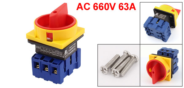 Main Color Blue, Black, Yellow, Red Brand DMiotech Terminals 6 Screw Terminals Country of Manufacture CHINA Model SZD11-63 Material Plastic, Electronics Ith 63A Total Size 6.5 x 6.5 x 10.5cm / 2.5" x 2.5" x 4" (L*W*H) Ui 660V Ue 240V 440V Product Name Changeover Switch Net Weight 245g Package Content 1 x Changeover Switch Icw 360A Phase 3 Positions 2 Positions (ON/OFF) - Reviews