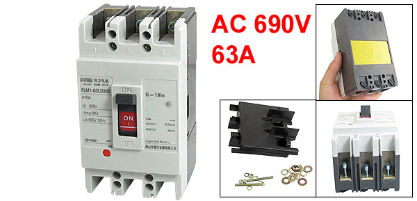 Product Name Moulded Case Circuit Breaker Model Number FLM1-63L/3300 Rated Voltage AC 690V Rated Current 63A Uimp 8KV Ui AC 800V Poles 3 Pole Overall Size (Approx) 13.5 x 7.5 x 7cm/ 5.3" x 3" x 2.8" (L*W*H ) Material Plastic, Electric Components Color As Picture Shown Weight 822g Package Content 1 x Moulded Case Circuit Breaker