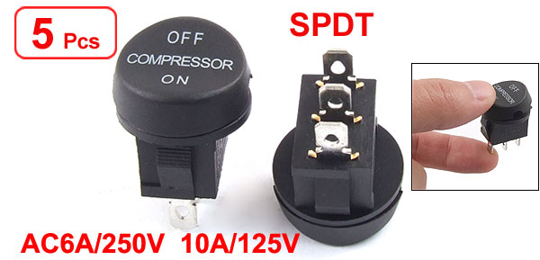 Product Name On/On Rocker Switch Poles SPDT Terminals Quantity 3 Pins Rating Voltage 6A 250V AC 10A 125V AC Mounting Hole Size 19 x 12mm / 0.75" x 0.47"(L*W) Overall Size 22 x 33cm / 0.87" x 1.3"(D*H) Color Black Material Plastic & Metal Total Weight 28g Package Content 5 x Rocker Switch - Reviews