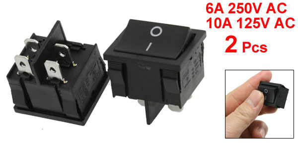 Product Name Rocker Switch Poles DPST Terminals 4 Pin (On - Off) Rating Voltage 6A 250V AC 10A 125V AC Total Size(Each One) 2.4 x 2.1 x 2.5cm / 0.9" x 0.8" x 1"(L * W * T) Mount Hole Size 2.2 x 1.9cm / 0.87" x 0.75"(L*W) Color Black Material Plastic & Metal Total Weight 14g Package Content 2 x Rocker Switch - Reviews