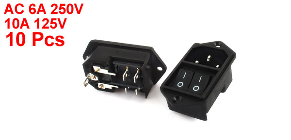 AC 6A/250V 10A/125V SPST Rocker Switch IEC320 C14 Male Plug Inlet 10Pcs