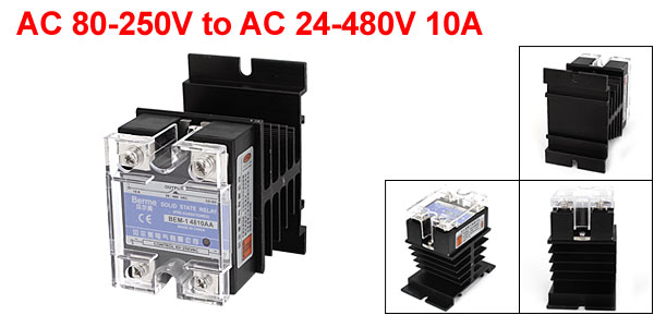 AC 80-250V to AC 24-480V 10A 4-Screw Terminals Single Phase Solid State Relay