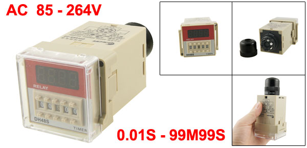 Product Name Time Relay Model DH48S-S Working Voltage AC 85-264V Contact Capacity AC 250V 5A Resistive Load Time Range 0.01S-99M99S Total Size (Approx.) 120 x 53 x 50mm/ 4.7" x 2.1" x 2" (L*W*H) Weight 143g Package Content 1 x Time Relay - Reviews