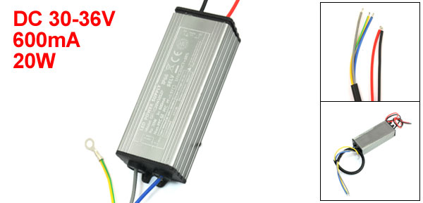 Product Name Waterproof LED Driver Fit for 20W LED Strip Input AC 85-265V 50/60HZ Output DC 30-36V 600mA Protection Rank IP66 Overall Size(Approx.) 10.3 x 3.5 x 2.5cm/4" x 1.4" x 1" (L*W*T) Cable Length Short: 25cm/9.8"