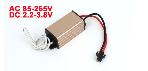 Product Name LED Drive Power Supply Model HL-W001 1x1W Input AC 85-265V 50/60Hz Output DC 2.2-3.8V 300mA Body Size 4.6 x 2.5 x 2cm/ 1.8" x 1" x 0.8"(L*W*T) Cable Length 11cm/ 4.3" Main Material Aluminum Weight 44g Package Content 1 x LED Drive Power Supply - Reviews