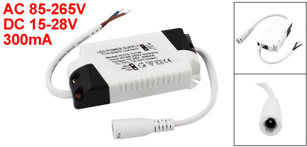 Main Color White, Gray Input AC 85-265V 50/60HZ Brand DMiotech Net Weight 37g Country of Manufacture CHINA Cable Length 12cm/ 4.7" Model HJY5-7X1W Package Content 1 x LED Power Supply Driver Connector DC 5.5 x 2.1mm Female Plug Material Plastic Output DC 15-28V 300mA Body Size 68 x 33 x 22mm/ 2.7" x 1.3" x 0.9" (L*W*T) - Reviews