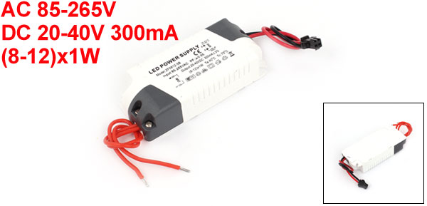 Main Color White,Gray,Black,Red Input AC 85-265V Net Weight 53g Country of Manufacture CHINA Package Content 1 x LED Drive Power Supply JST-HX Wire Length 12cm/5" Material Plastic Output Power (8-12)x1W Output DC 20-40V 300mA Body Size(Approx.) 9 x 3.8 x 2.2cm/3.5"x 1.5" x 0.87"(L*W*H) Wire Length(Red) 13cm/5" - Reviews
