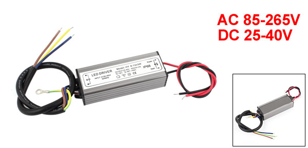 Main Color Gray, Black Fit for (8-12)X3W LED Light Net Weight 148g Brand DMiotech Input AC 85-265V 50/60HZ Country of Manufacture CHINA Cable Length 38cm/ 15", 22cm/ 8.7" Model HY8-12X3W Package Content 1 x Waterproof LED Power Supply Material Metal , Plastic Output DC 25-40V 600mA (+/-5%) Body Size 90 x 34 x 20mm/ 3.5" x 1.3" x 0.8"(L*W*T)  - Reviews