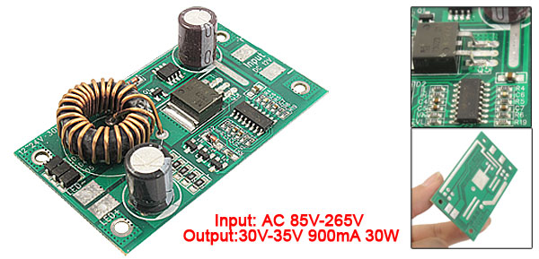 Product Name Power Supply Module Fit for 12V Spotlights Input Voltage AC 85V-265V Output 30V-35V 30W/900mA Dimension 7 x 4 x 2cm/2.76" x 1.57" x 0.79" (L*W*H) Material Plastic, Electronic Part Color As Picture Shown Net Weight 27g Package Content 1 x Power Supply Module - Reviews