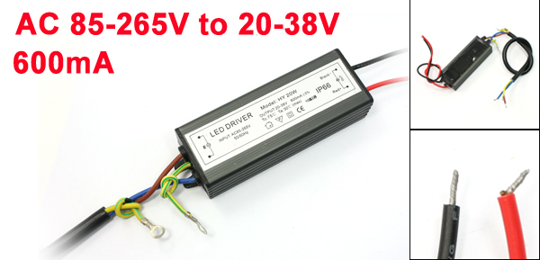 DetailsAC 85V-265V to 20-38V 600mA Power Supply Driver Adapter for LED Light Lamp  Product Name 20W LED Driver Power Supply Input AC 100-264V, 50/60Hz Output DC 20-38V, 600mA Material Aluminu, Plastic Size 90 x 34 x 21mm/ 3.5'' x 1.3'' x 0.83'' (L*W*H) Main Color Silver Tone, Black Weight 156g Package Content 1 x LED Driver Power Supply
