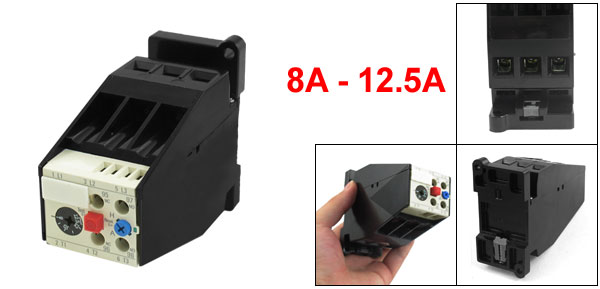 Product Name Thermal Overload Relay Model JRS2-63F3UA59 Material Plastic, Electronic Components Thermal Contact 1 NO + 1 NC Thermal Relay Rated Current 12.5A Adjustable Current Range 8A - 12.5A Thermal Element Rated Current 12.5A Rated Insulation Voltage 690V Total Size (Approx.) 8.3 x 4.4 x10.3cm / 3.3"x1.7"x4.1" (L*W*H) Main Color Black Weight 284g Package Content 1 x Thermal Overload Relay - Reviews