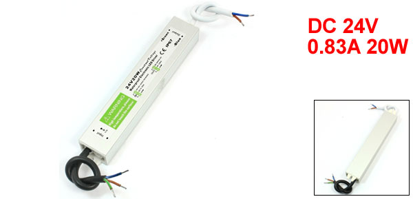 Product Name Waterproof LED Driver Input AC 90-250V 50/60Hz 0.38A 24W Output DC 24V±0.5V 0.83A 20W Protection Rank IP67 Overall Size(Approx.) 16 x 2.9 x 2cm/6.3" x 1.2" x 0.8"(L*W*T) Cable Length 10cm/3.9" Shell Material Aluminum Alloy, Plastic Main Color Silver Tone Net Weight 200g Package Content 1 x Waterproof LED Driver - Reviews