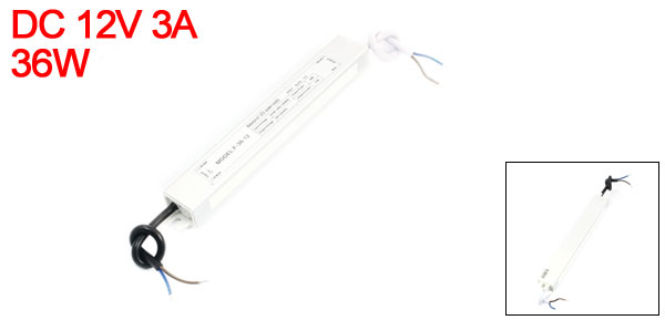 Product Name Waterproof LED Driver Fit for 36W LED Strip Input AC 90-260V 50/60HZ Output DC 12V 3A Protection Rank IP67 Overall Size(Approx.) 22 x 3 x 2cm/8.7" x 1.2" x 0.78" (L*W*T) Cable Length 15cm/5.9" Shell Material Aluminum Alloy, Plastic Main Color Silver Tone Net Weight 215g Package Content 1 x Waterproof LED Driver - Reviews