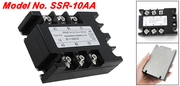 Product Name 3 Phase Solid State Relay Model No. SSR-10AA Control Method AC to AC Input Current 6-10mA Input Voltage 90-280V AC Output Current 10A Output Voltage 380VAC Total Size (Approx.) 10.4 x 7.3 x 3.2cm / 4" x 2.9" x 1.3" (L*W*H ) Material Metal, Plastic Color Black, Silver Tone Weight 295g Package Content 1 x 3 Phase Solid State Relay - Reviews