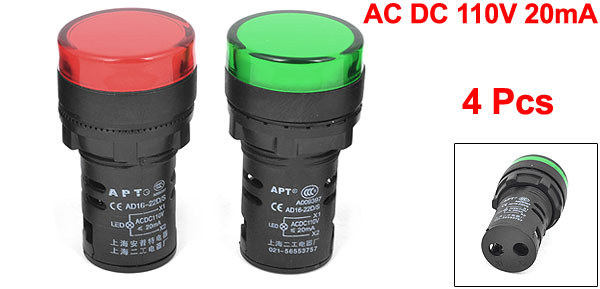 AC DC 110V 20mA Round Red Green Plastic Pilot Signal Indicator LED Lamp 4pcs