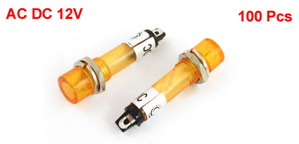 AC DC 12V 2 Pins Terminals Signal Lamps Orange Indicator Lights 100 Pcs