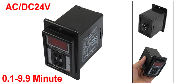 Product Name Time Relay Type ASY-2D Control Voltage AC/DC24V Frequency 50/60 Hz Contact AC 220V 5A Non-inductive Load Time Range 0.1-9.9 Minute Mount Size (Approx.) 60 x 48 x 68mm/ 2.36" x 1.89" x 2.68" (L*W*Depth) Front Face Size 8.5 x 5.7cm / 3.3" x 2.2"(L*W) Mount Hole Diameter 4.5mm/ 0.18" Total Length 8.8cm / 3.5" Main Color Black Net Weight 205g Package Content 1 x Digital Time Relay - Reviews