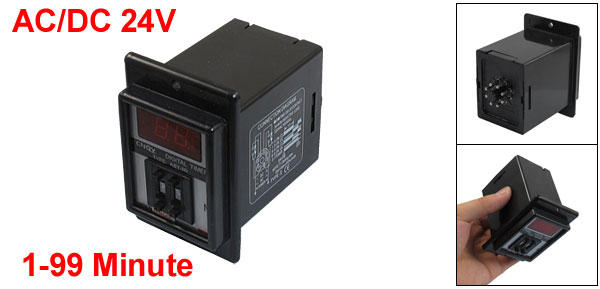 Product Name Time Relay Type ASY-2D Control Voltage AC/DC 24V Frequency 50/60 Hz Contact AC 220V 5A Non-inductive Load Time Range 1-99 Minute Mount Size (Approx.) 60 x 48 x 68mm/ 2.36" x 1.89" x 2.68" (L*W*Depth) Front Face Size 8.5 x 5.7cm / 3.3" x 2.2"(L*W) Mount Hole Diameter 4.5mm/ 0.18" Total Length 8.8cm / 3.5" Main Color Black Net Weight 129g Package Content 1 x Digital Time Relay - Reviews