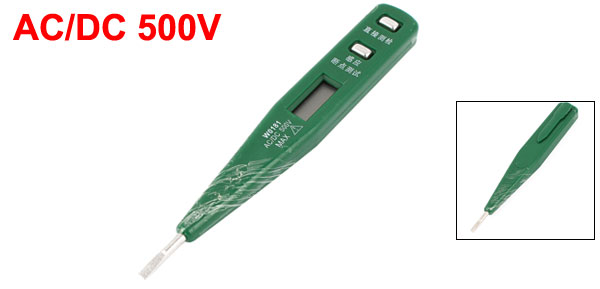 Product Name Digital Voltage Tester Material Plastic, Metal Voltage AC/DC 500V (Max) Tip Size (Approx.) 3.3mm/0.13" Total Size (Approx.) 13 x 1.8 x 1.4cm/5.1" x 0.7" x 0.55"(L*W*T ) Handle Color Green Net Weight 18g Package Content 1 x Digital Voltage Tester - Reviews