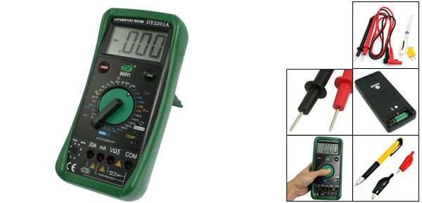Product Name Multitester Model DY2201 DC Voltage 2V, 20V, 200V, 1000V AC Voltage 2V, 20V, 200V, 700V DC Current 20mA, 200mA, 20A AC Current 20mA, 200mA, 20A Resistance(ohm) 20, 200, 2k, 20k, 200k, 2M, 20M, 200M Main Color Black, Dark Green Mateiral Plastic, Electronic Parts Cable Length 85cm/ 33" Size 19.5 x 9.5 x 6cm/ 7.7" x 3.7" x 2.4" (L*W*T) Net Weight 615g Package Content 1 x Multitester