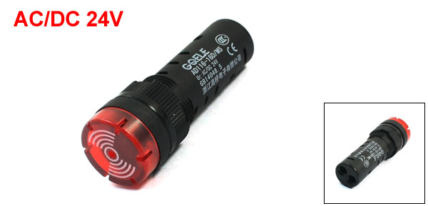 AC/DC24V 16mm Buzzer Warn Red LED Accident Signal Indicator Light