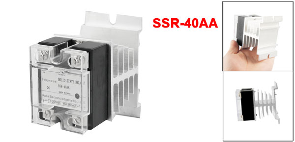 Product Name Solid State Relay + Heat Sink Model SSR-40AA Material Metal, Aluminum, Plastic Rated Load Current 40A Input AC 150-350V Output AC 24-480V Total Size (Approx.) 8 x 5 x 8cm / 3.1" x 1.9" x 3.1" (L * W * H ) Color Silver Tone, Black Weight 185g Package Content 1 x Solid State Relay