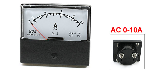 Product Name Analog Ammeter Model DH-670 Measuring Current Range AC 0-10A Accuracy Class 2.5 Total Size 7 x 6 x 4.5cm/2.8" x 2.4" x 1.8"(L*W*T) Thread Dia. 5mm/ 0.2", 3mm/0.12"