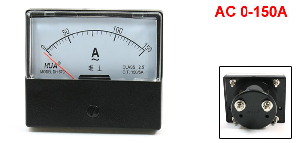 Product Name Analog Ammeter Model DH-670 Measuring Current Range AC 0-150A Accuracy Class 2.0 Total Size 7 x 6 x 4.5cm/2.8" x 2.4" x 1.8"(L*W*T) Thread Dia. 5mm/ 0.2", 3mm/0.12"
