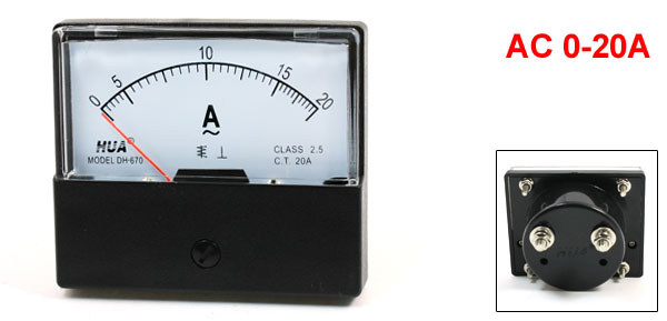 Product Name Analog Ammeter Model DH-670 Measuring Current Range AC 0-20A Accuracy Class 2.5 Total Size 7 x 6 x 4.5cm/2.8" x 2.4" x 1.8"(L*W*T) Thread Dia. 5mm/ 0.2", 3mm/0.12"