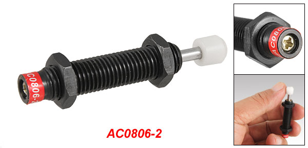 Product Name Pneumatic Shock Absorber Model NO. AC0806-2 Stroke 6mm/ 0.24" Rod Diameter 3mm/ 0.12" Threaded Diameter 8mm/ 0.31" Max. Impact Spead(m/s) 1 Max. Absorbed 2Nm Overall Size 50 x 10mm/ 2" x 0.39" (L*D) Color Black, White Material Plastic, Metal Weight 14g Package 1 x Pneumatic Oil Pressure Shock Absorber - Reviews