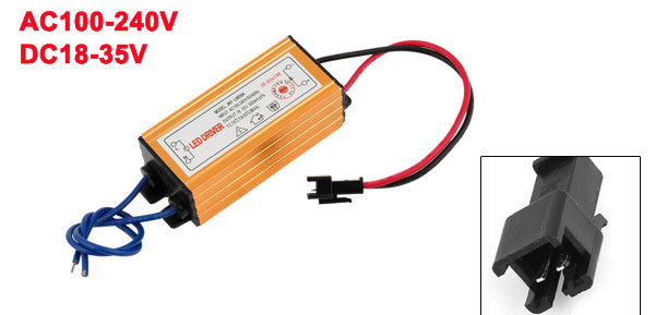Product Name LED Drive Power Supply Model JNY-L0609A Type LED Wiring Type Input AC100-240V 50/60Hz Output DC18-35V 300mA TC 75C TA 50C(Max.) Body Size 8 x 3 x 2cm/3.2 x 1.2 x 0.8 inches(L*W*H) Total Length 33cm/13.2" Main Material Aluminum, Plastic Color Gold Tone.Black Weight 80g Package Content 1 x LED Drive Power Supply - Reviews