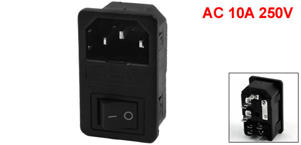 AC10A 250V 3 Terminals IEC320 C14 Male Power Plug w 4-Pin Switch