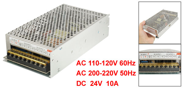 Output DC 24V, 10A Material Metal, Electronic Parts Size 19.8 x 11 x 5cm/ 7.8" x 4.3" x 2"(L*W*T) Color Silver Tone Net Weight 697g Package Content 1 x Power Supply - Reviews