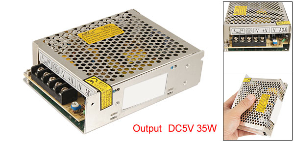 Item Name Switching Power Supply Model No. S-35-5 Power Type Constant Voltage Input AC 100-120V, 0.8A, 50/60Hz AC 200-240V, 0.45A, 50/60Hz Output DC +5V, 7A DC Output Power 35W Size 13 x 9.8 x 3.7cm/ 5.1" x 3.8" x 1.4" (L*W*T) Case Material Metal Main Color Silver Tone Net Weight 346g Package Content 1 x Switching Power Supply - Reviews