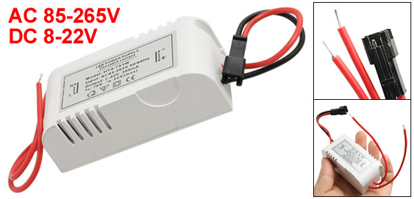 Product Name Constant LED Driver Input AC 85-265V 50/60Hz Output DC 8-22V 300mA Output Power 4 - 7 x 1W Material Plastic, Electronic Parts Size 7.3 x 3.6 x 2.4cm / 2.9" x 1.4" x 0.9" (L*W*H) Each Wire Length 9.5cm/ 3.7" Main Color White Net Weight 44g Package Content 1 x Constant LED Driver  - Reviews