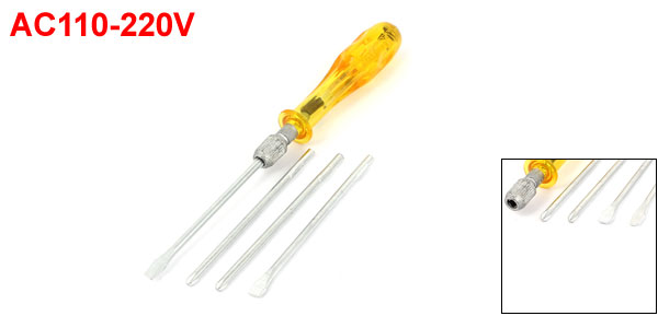 Slotted Head Width 4mm/ 0.16", 5mm/0.2" Voltage Range AC 110-220V Main Color Orange, Silver Tone Phillips Head Size PH0 Net Weight 45g Country of Manufacture CHINA Package Content 1set x Electroprobe Screwdriver Material Plastic, Metal Metal Rod Length(Each) 82mm/ 3.2" Handle Size 100 x 18mm / 4" x 0.7"(L*W) - Reviews
