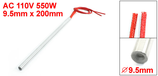 Product Name Cartridge Heater Material Stainless Steel, PVC Rated Voltage AC 110V Power 550W Heater Size (Approx.) 9.5 x 200mm / 0.37" x 8" (D * L) Wire Length (Approx.) 27cm / 10.6" Color Red, Silver Tone Weight 75g Package Content 1 x Cartridge Heater - Reviews