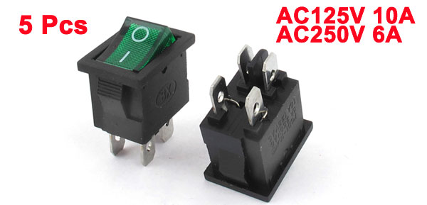 Main Color Black, Green Country of Manufacture CHINA Terminals 4 Model KCD1-104 Material Plastic, Metal Button Color Green Total Size 30 x 22 x 14mm /1.2 x 0.9 x 0.6inch(L*W*T) Poles DPST(I/O) Product Name Rocker Switch Net Weight 22g Rated AC 250V 6A AC 125V 10A Mounting Size 29 x 30 x 10mm / 1.1 x 1.2 x 0.4inch(L*W*H) Package Content 5 x Rocker Switch - Reviews