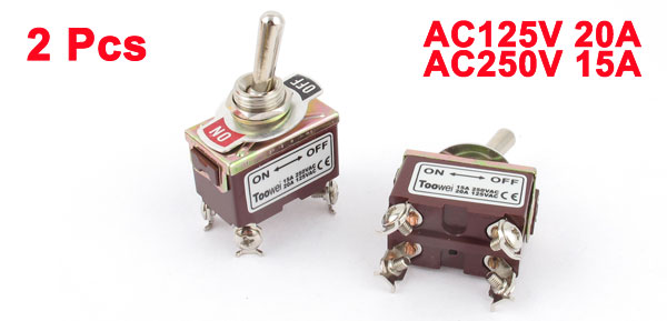 AC125V 20A AC250V 15A DPST ON-OFF 2 Positions 4 Pin Latching Toggle Switch 2pcs