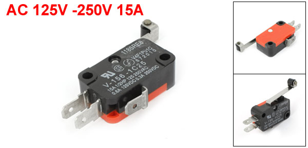Product Name Micro Switch Model V-165-1C25 Actuator Type Momentary Voltage Current AC 125V -250V 15A Contact configuration SPDT(1NO 1NC) Pin Number 3 Roller Size 4.4 x 4.7mm/0.17" x 0.19"(T*D) Lever Length 28mm/1.1" Body Size 29 x 16 x 10mm/1.2" x 0.63" x 0.4" (L*W*T) Material Plastic, Metal Main Color Black, Red Weight 6g Package Content 1pcs x Micro Switches - Reviews