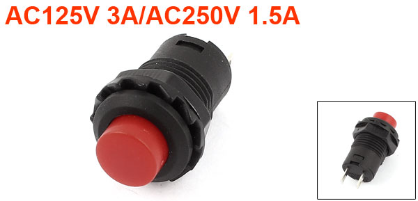 Product Name Push Button Switch Rating AC125V 3A/AC250V 1.5A Type SPST Action Type Momentary Button Color Red Thread Dia 12mm/ 1/4PT Total Size 3 x 1.6cm/1.2" x 0.63"(L*D) Materials Plastic, Metal Main Color Red, Black Net Weight 4g Package Content 1 x Push Button Switch - Reviews