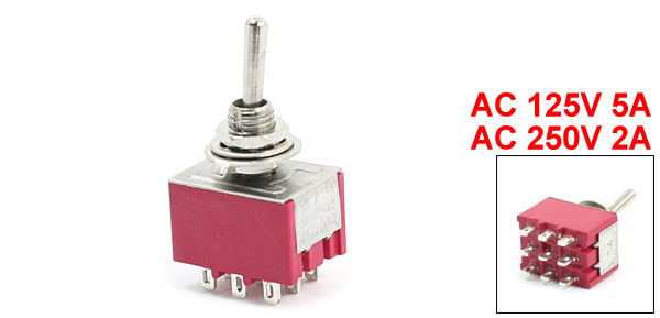 Product Name Toggle Switch Type 3PDT (Latching) Position 3 Positions(ON/OFF/ON) Voltage, Current AC 125V 5A