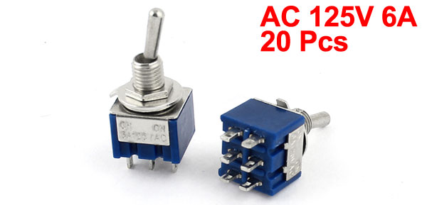 Product Name Toggle Switch Main Color Silver Tone, Blue Net Weight 170g Country of Manufacture CHINA Package Content 20 x Miniature Toggle Switch Model MTS-202 Main Body Size 1.3 x 1.2 x 3.2cm/ 0.5 x 0.4 x 1.3inches (L*W*H) Type DPDT (Latching) Material Metal, Plastic Position 2 Positions (ON/ON) Mounting Thread Diameter 5.8mm/ 0.23 inches Voltage, Current AC125V 6A - Reviews