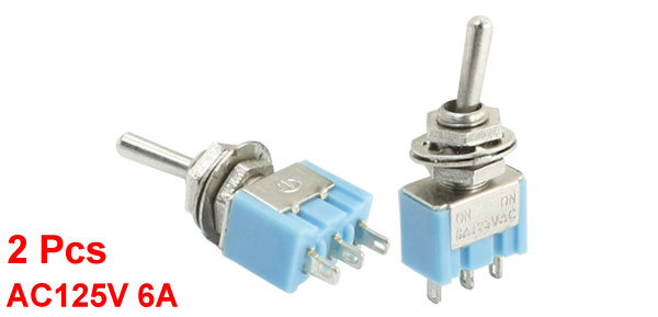 Product Name Toggle Switch Rating AC125V 6A Position Number 2(ON-ON) Pin Number 3 Actact Type SPDT Thead Dia(Approx) 6mm / 0.24" Pitch 4mm Body Size 13 x 10 x 8mm/0.51" x0.4" x 0.31" (L*W*T) Total Height 3.2cm / 1.3" Material Plastic, Metal Color Blue, Silver Tone Weight 10g Package Content 2pcs x Toggle Switch - Reviews