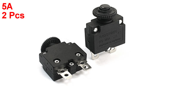 Product Name Circuit Breaker Model HS-R01 Disconnecting Current 5A Contact Type NC Rated Voltage AC 125/250V 50/60Hz Thread Dia (Approx.) 10mm / 0.39" Pin Size 11 x 6.5mm/0.43" x 0.25"(L*W) Pin Center Distance 17mm/0.67" Overall Size (Approx.) 2.9 x 1.4 x 4.5cm/1.1" x 0.57" x 1.8"(L*W*H ) Material Plastic, Metal Color Black Weight 26g Package Content 2pcs x Circuit Breaker - Reviews