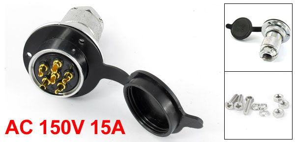 AC150V 15A 30mm Dust Cover Metal 6Pin Male Female Aviation Plug Connector