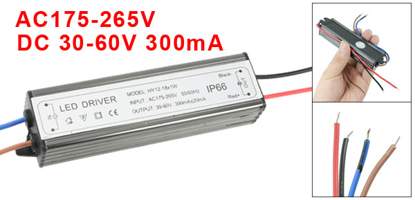 Product Name 12-18*1W LED Power Driver Design Water Resistant IP66 Input AC175-265V 50/60Hz Output DC 30-60V 300mA ± 20mA Body Size 10.5 x 3 x 2cm / 4.1" x 1.2" x 0.8" (L*W*T) Input Wire Length 13cm/5.1" Output Wire Length 18cm/7" Main Material Metal, Plastic, Electric Parts Color As Picture Shown Net Weight 134g Package Content 1 x 12-18*1W LED Power Driver - Reviews