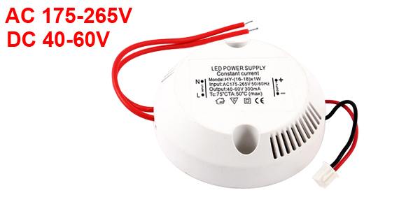 Product Name (16-18) x 1W LED Driver Power Supply Input AC 175-265V, 50/60Hz Output DC 40-60V 300mA Material Plastic Body Size 70 x 20mm/ 2.8" x 0.8"(D*T) Main Color White Weight 46g Package Content 1 x (16-18) x 1W LED Driver Power Supply - Reviews