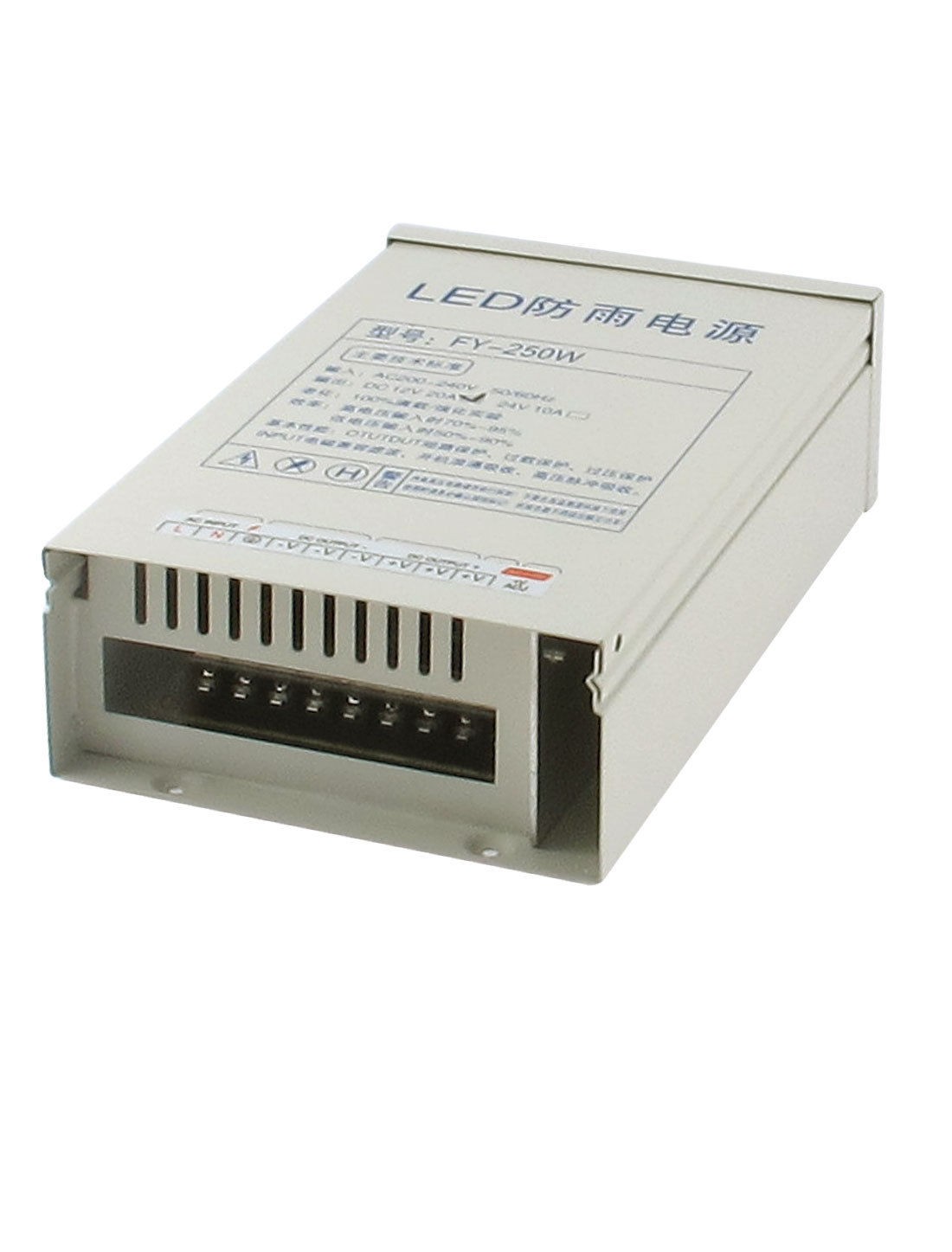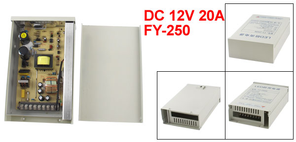 Item Name Rainproof Power Supply Model FY-250 Application for LED Light Input AC 200-240V 50/60Hz Output DC 12V 20A Power 240W Size 22.7 x 13.6 x 6.1cm/ 8.9" x 5.4" x 2.4"(L*W*T) Color As Picture Shown Net Weight 1126g Package Content 1 x LED Rainproof Power Supply - Reviews