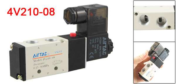 AC220V 29mA 2 Position 5 Port Pneumatic Air Control Solenoid Valve 4V210-08